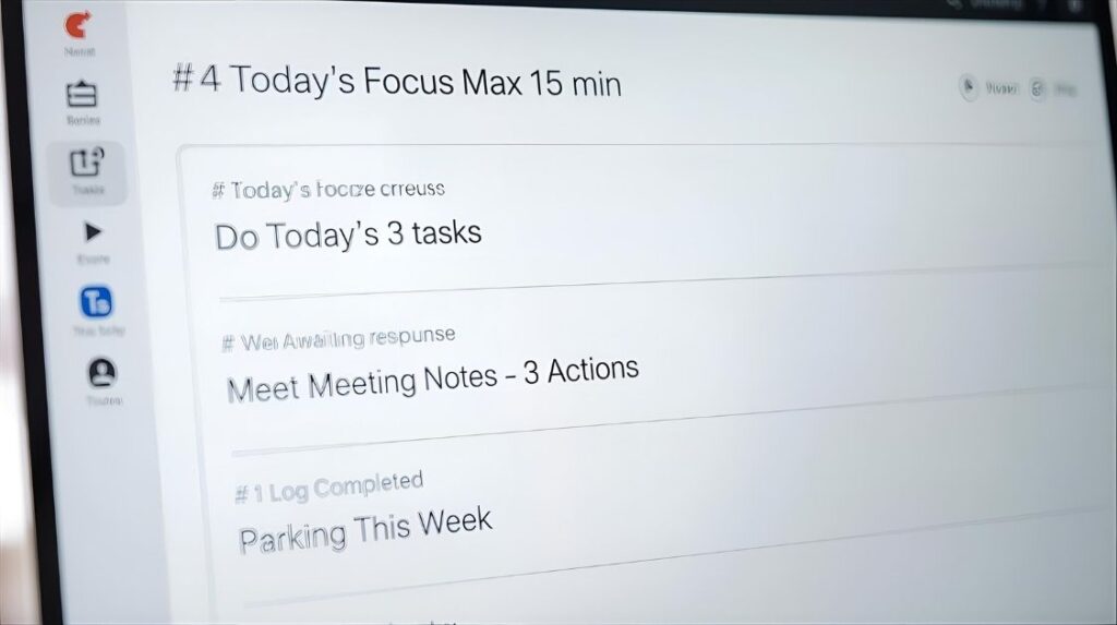 - 朝の開始2分で“Doの順番”だけ決める:迷いを消す最小手数。