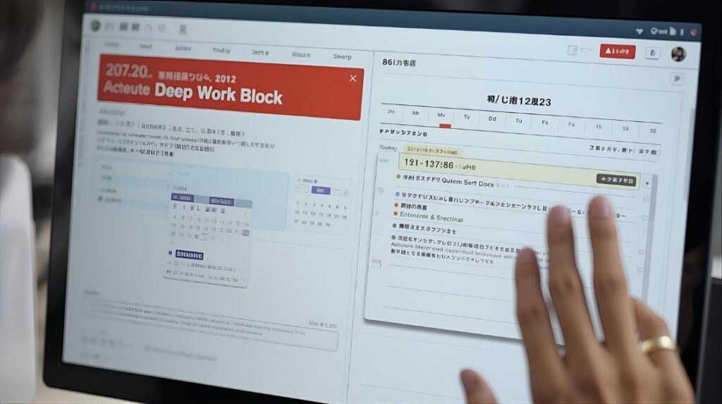 - 90分ブロック(深い作業)はカレンダーに予約、通知は3分前だけ(→関連記事)。