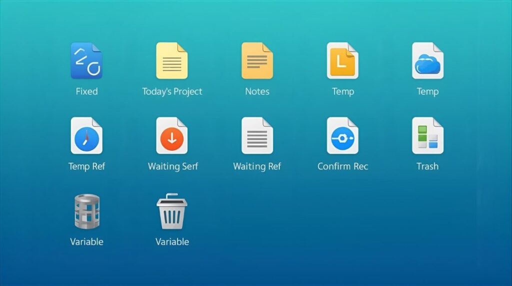 - 今日のコア作業に直結する最大4つまで。超えたら案件フォルダへ即移動。