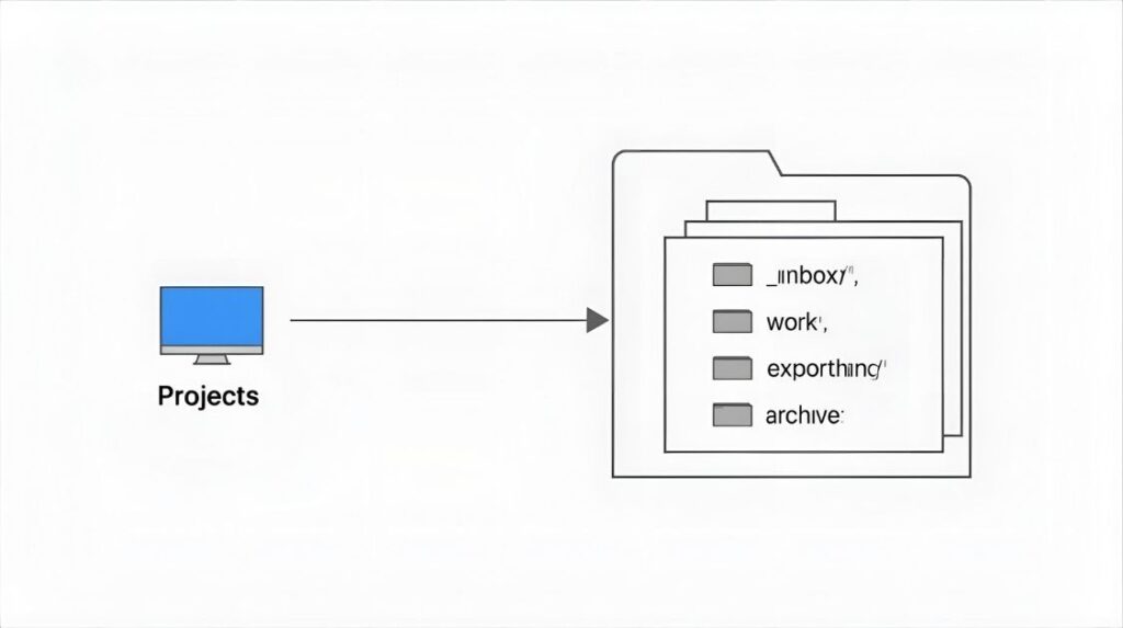 /Projects/_inboxの棚卸し→work/export/archiveへ振り分け。 - 月末(→関連記事):命名のブレを修正し、