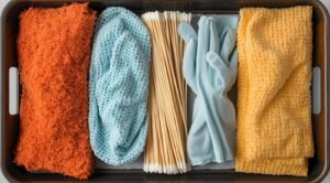 - WARM(2〜3回/週):綿棒・紙片、薄手手袋(中央)