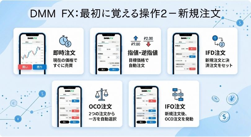 - 新規注文は、即時注文・指値/逆指値・IFD/OCO/IFOがクイックガイドに整理されている (DMM FX)