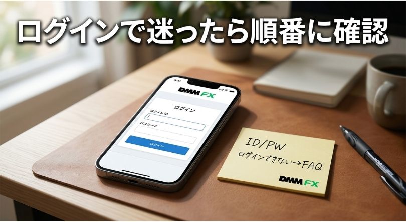 ログインFAQの一覧から、状況に近い項目を順に確認します。 (DMM FX)