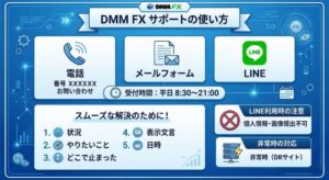 FAQでは、複数端末から同時ログインできないため、別端末ログインを検知すると、ログイン中の端末が強制ログアウトされる可能性があると説明されています。 (DMM FX)