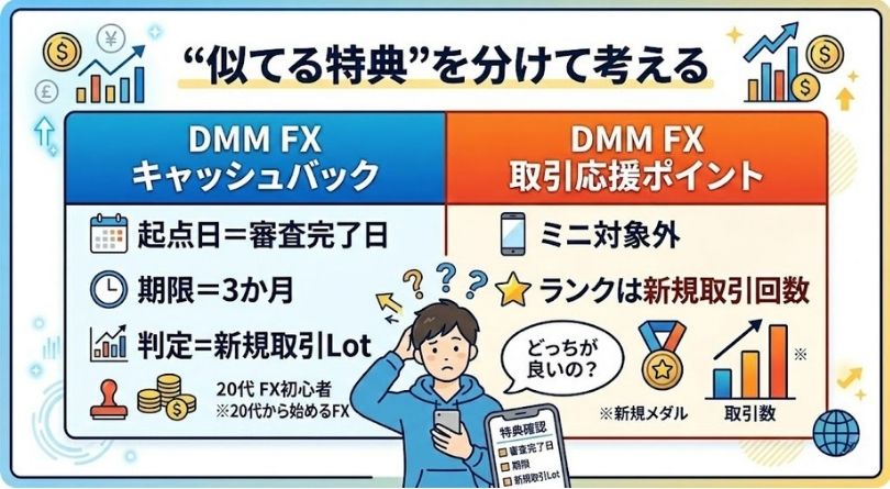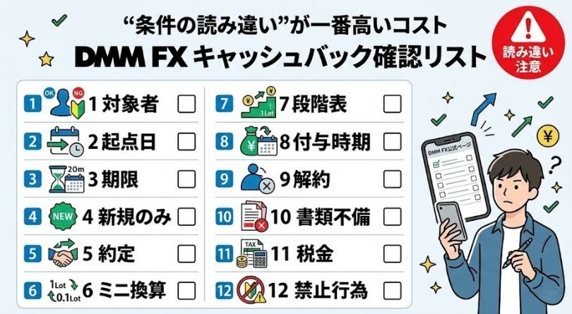DMM FXのキャンペーンで起きがちな勘違いは、金額の大小よりも 条件の読み違い で発生します。