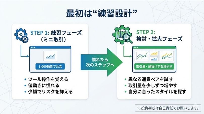 最初は「ミニ1Lot」みたいに、小さく決めるほど判断が楽です(投資助言ではなく、迷いを減らすための“決め方”です)。