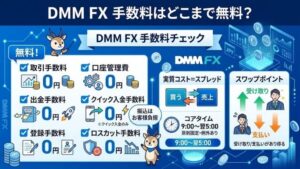 DMM FXは取引手数料が無料のため、スプレッドが取引コストという説明があります。(DMM FX)