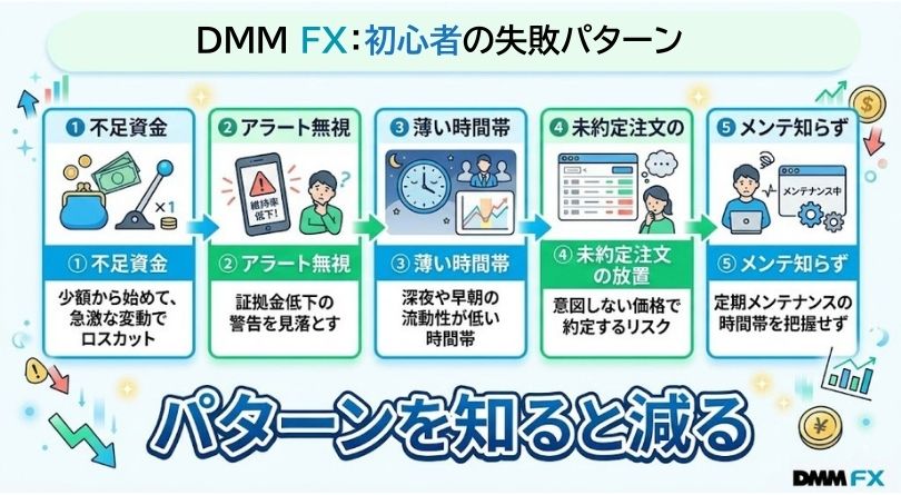- コストのリスク:スプレッドが広がりやすい時間帯・状況がある (DMM FX)