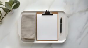 - クリップボード or メモ用紙(一行メモ用)/筆記具