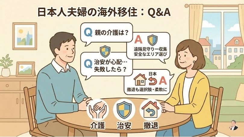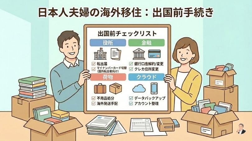 結論:海外移住は「目的→国→滞在資格(ビザ)→お金→生活立ち上げ」の順で進めると、夫婦で揉めにくく、失敗を減らせます。
