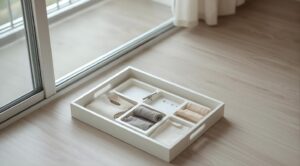 定位置のつくり方——トレー+フック+浅い箱の三点セット